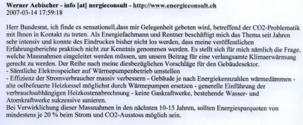 Antwort auf den ersten Blog von Bundesrat Leuenberger vom 14.März "Die CO2-Abgabe dreht sich immer noch in einer Warteschlaufe"